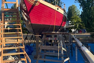 Thursday the mast came out of Sea Gypsy. The Olympic Crane truck showed up at 1000 hours, and by 1030 the mast was horizontal on sawhorses beside the…